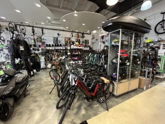 V prostorih trgovine deluje tudi servis koles in fitnes opreme.